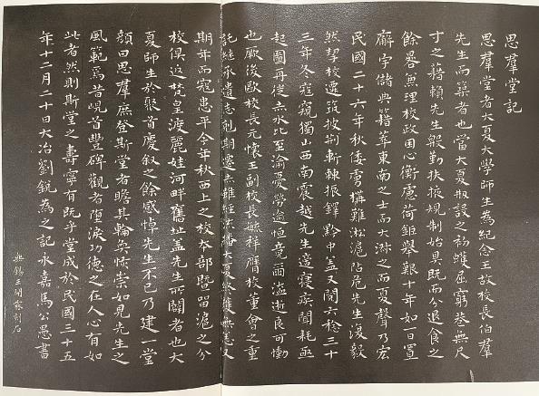 马公愚先生曾为大夏大学多座建筑的落成与重大庆典书写铭文,其中包括现在仍在普陀校区的思群堂,落成时由马公愚先生书写《思群堂记》,还有《大夏大学体育馆落成颂》《大夏大学校舍第一座奠基记》《大夏旗杆铭》《大夏大学十周年纪念颂》等等,这些铭文的书写都与大夏大学的历史发展紧密相连。
