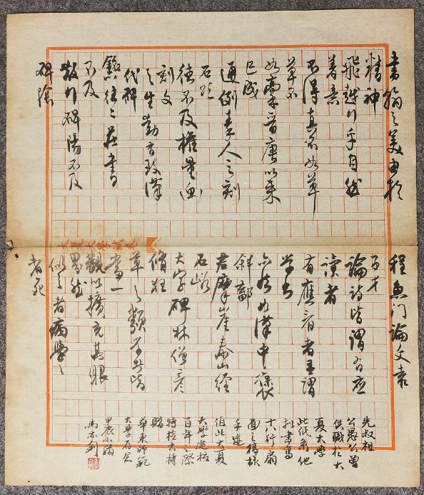 马公愚先生拟书写十八行扇面样式的论书手稿