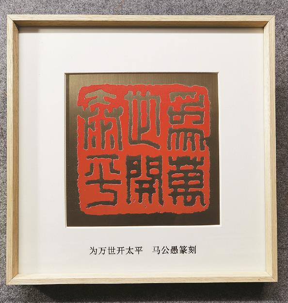 铜制放大的马公愚先生所刻“为万世开太平”印章