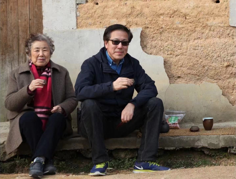 大夏大学校友钱玉音与儿子华东师大校友查建渝。