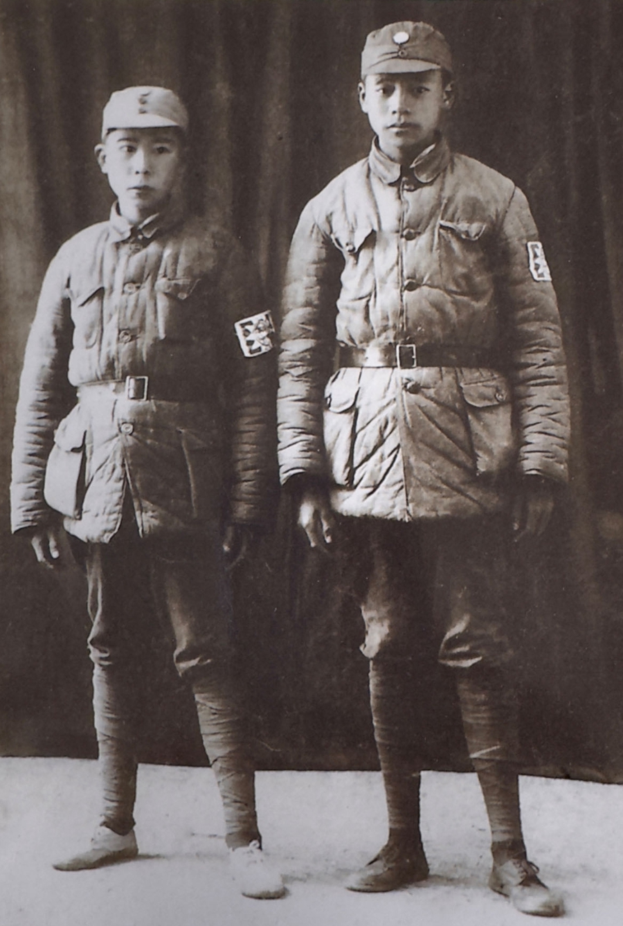 1939年,少年时期查汝勤(左)与兄长参加新四军抗日训练营,后成为新四军独立六旅文化教员。