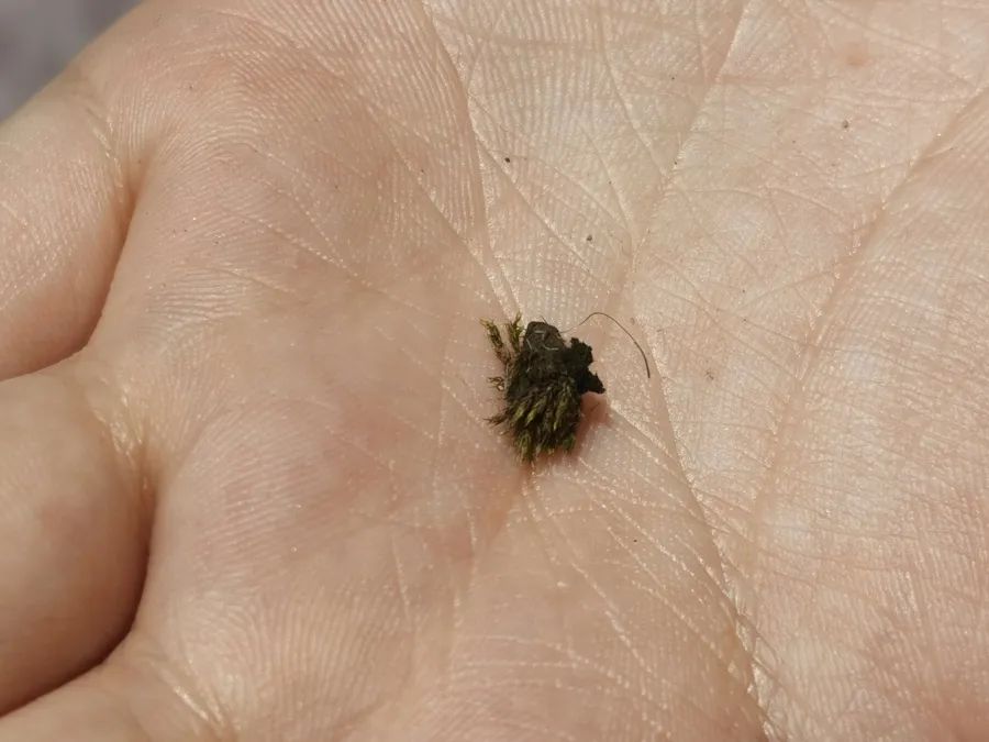 解放日报·上观新闻记者7月25日在桃浦中央绿地内看到,红蒴真藓藏身在一条步道的透水砖缝隙内,周边还有真藓“亲戚”相伴,即使科研人员把刚获取的样本放在手掌心里,也很难看清其“样貌”。