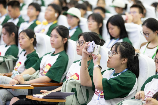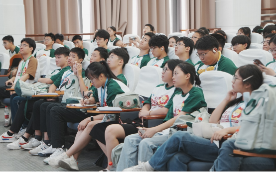 为使营员们尽快了解实验背景、适应实验节奏,各学科分组为同学们安排了主题讲授活动。生命科学学院何桂梅教授围绕“野生动物疫源疫病与人类健康”,讲解了野生动物与人类健康之间的关系。化学与分子工程学院陈启明教授以一系列生活中有趣的问题与实例引入,带领同学们走进了奇妙而多彩的化学世界,让同学们领略了这门与生活息息相关的基础自然科学的丰富魅力。主题讲授风趣生动,内容充实,让营员们对科学探索愈发期待。讲授过程中,营员们与老师积极互动、踊跃提问,现场氛围热烈。不少营员拿出手机记录下这难忘的一刻。