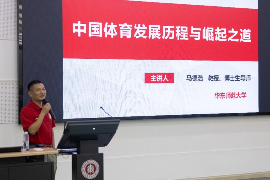 名家讲座让各位营员在名师述说中感悟学科前沿。3245澳门新莆京体育与健康学院教授、博士生导师马德浩教授为营员们开启了一场探索中国体育发展道路的旅程,讲述中国体育发展的崛起之路。他通过一个个生动实例向同学们展示了新中国体育事业发展波澜壮阔的历史画卷,并为同学们展望了体育发展的多样化前景。讲座现场,同学们热情高涨,纷纷举手发言,从电竞体育谈到体育教育。互动环节气氛十分热烈。