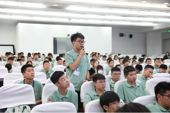 除了精彩纷呈的名家讲座与科学实验之外,华东师大还安排优秀学长学姐们以“朋辈交流,青春对话”为主题,为科学营营员们带来了一场干货满满的经验分享会。3名来自不同院系、专业的优秀学长学姐从学习、社交经验、大学生活适应、专业优势与就业方向等诸多方面分享了自己的经验与心得。提问环节,营员们纷纷举手,就自己感兴趣的问题向学长学姐请教,现场氛围火热。