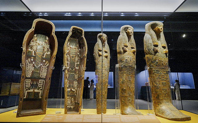 “金字塔之巅:古埃及文明大展”正在上海博物馆人民广场馆火热展出。展览通过“法老的国度”“萨卡拉的秘密”“图坦卡蒙的时代”三个板块展开独立叙事,观众得以与法老雕像、成套木乃伊棺、女王金饰以及萨卡拉地区新发现的彩绘木棺、动物木乃伊和雕像等重磅文物近距离相遇。