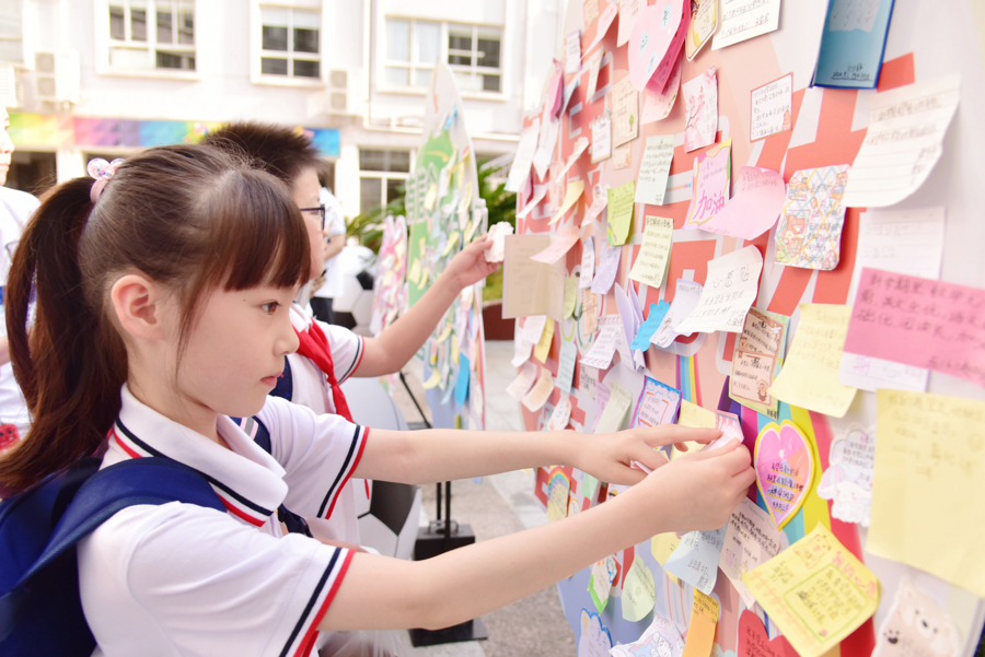 心愿墙前,同学们写下最喜欢的奥运健儿。