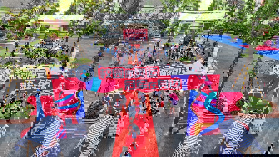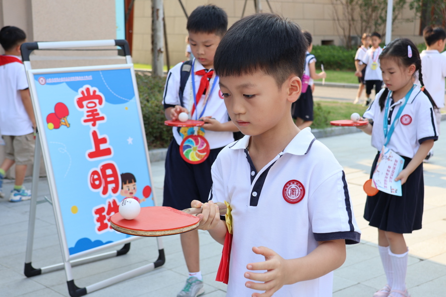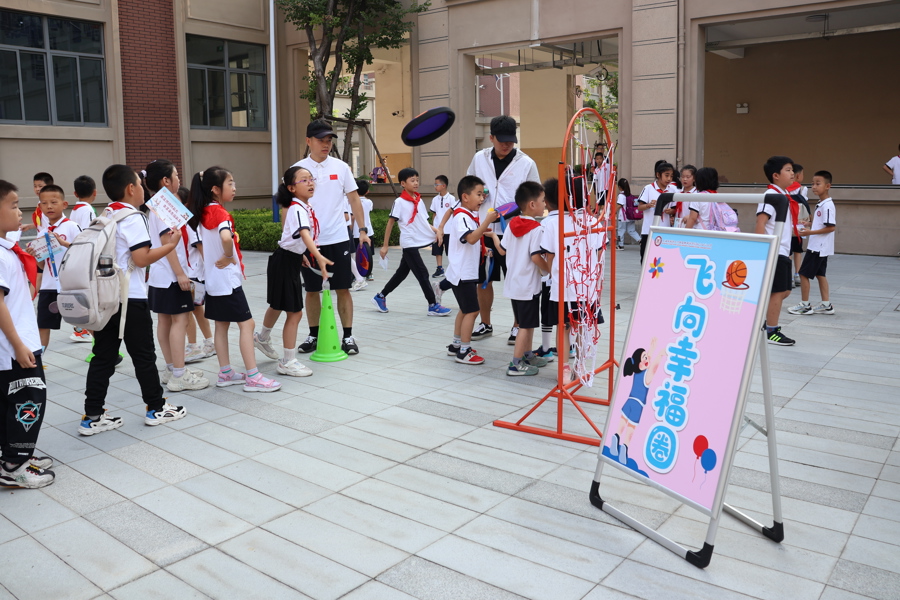 开学首日,上海工程技术大学附属松江泗泾实验学校校园“微奥运”现场。