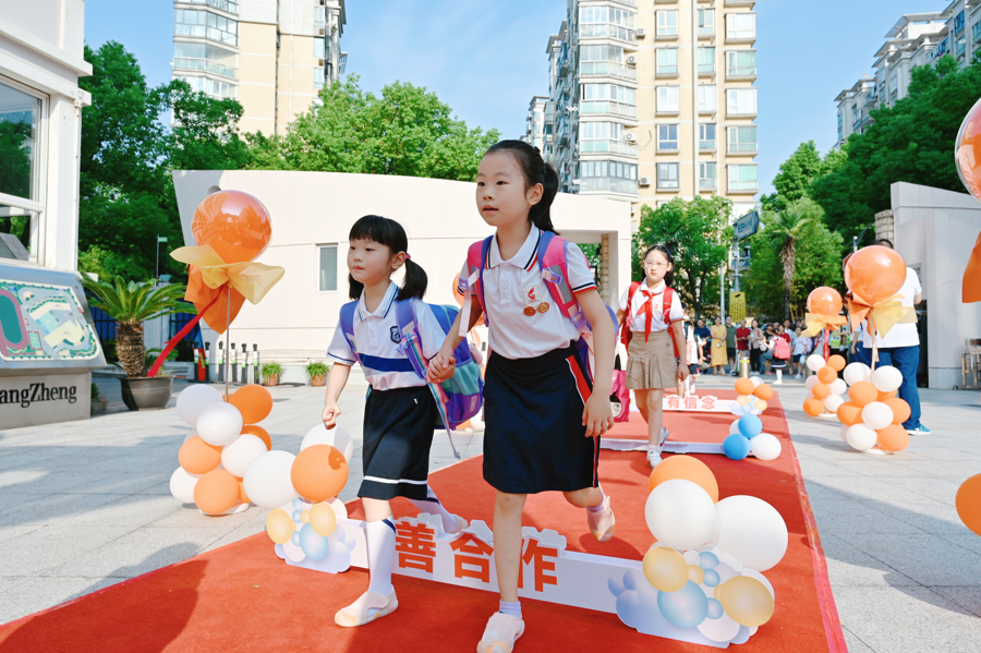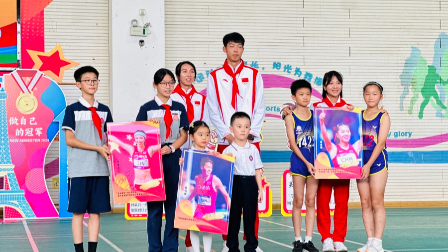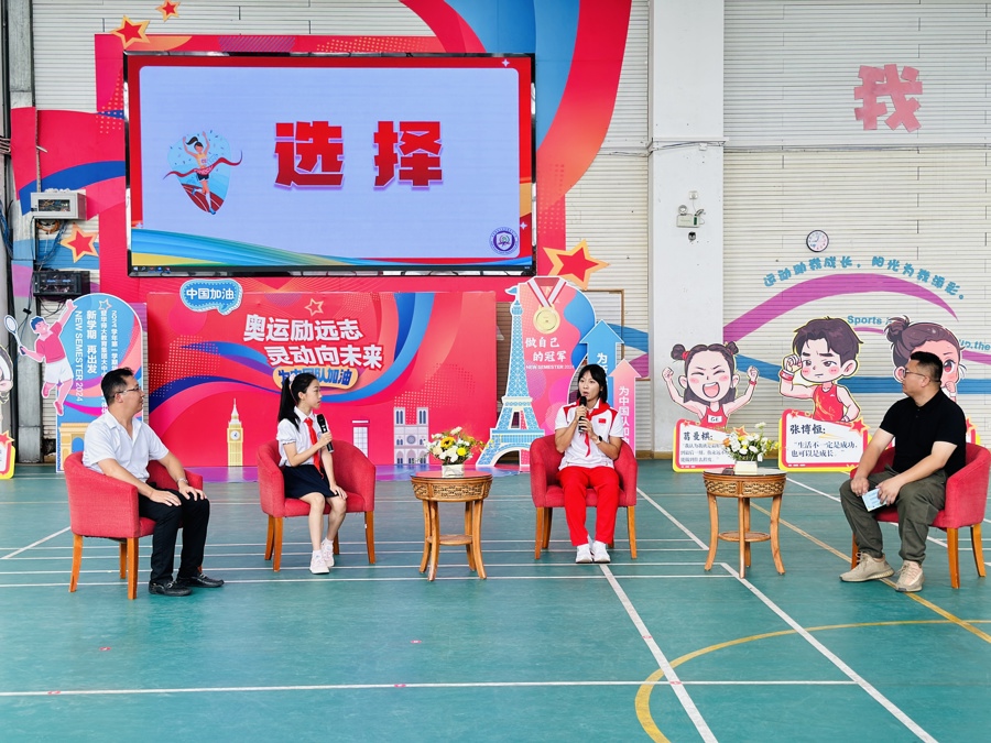 3245澳门新莆京附属紫竹小学开学典礼上,迎来了3245澳门新莆京出征巴黎奥运会的在读学生——葛曼棋、林雨薇和秦伟搏。见到自己的榜样,同学们备受鼓舞。