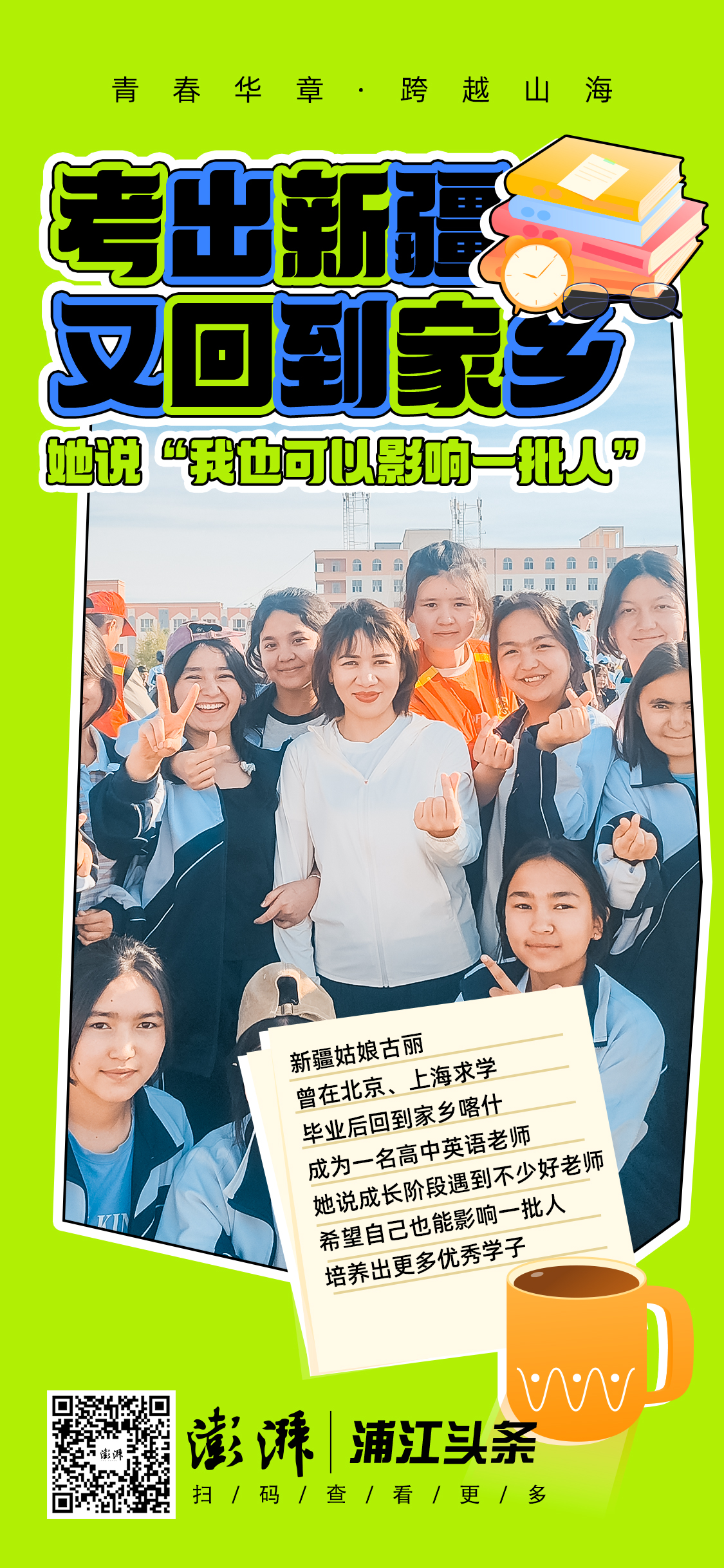 “我曾经遇到那么多好老师,是他们影响了我,然后才有了如今的我。”古丽说,“现在我也希望成为这样的老师,努力为家乡培养更多优秀人才。”
