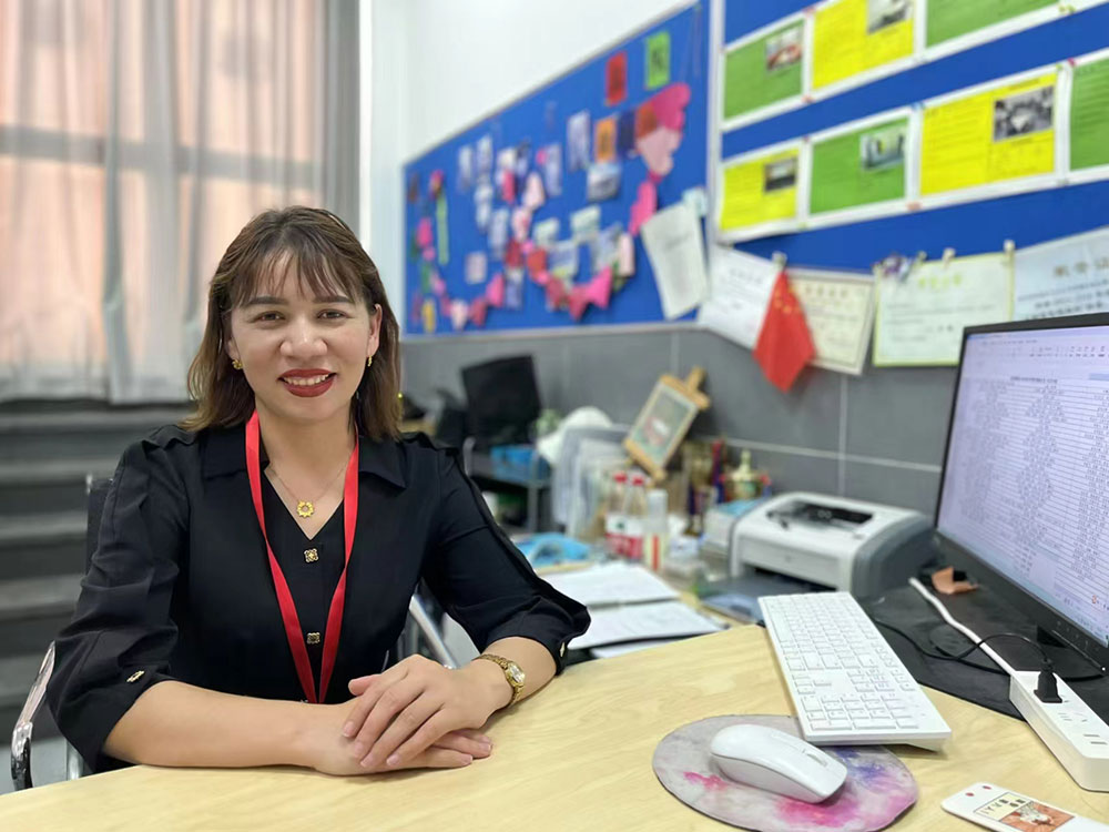 入职头一两个月,古丽还是会紧张。但教师站上讲台,必须有自信,只有这样才能得到学生的信赖。她通过更认真地备课、写教案、做课件,来克服内心的紧张,努力适应新角色。