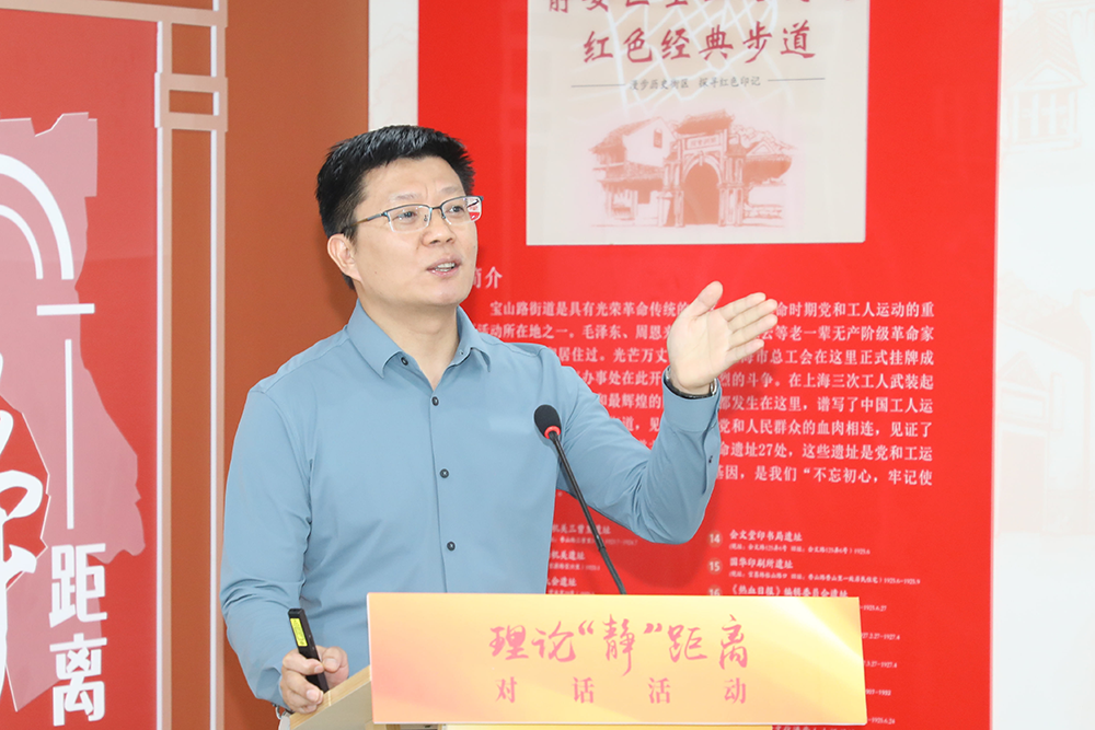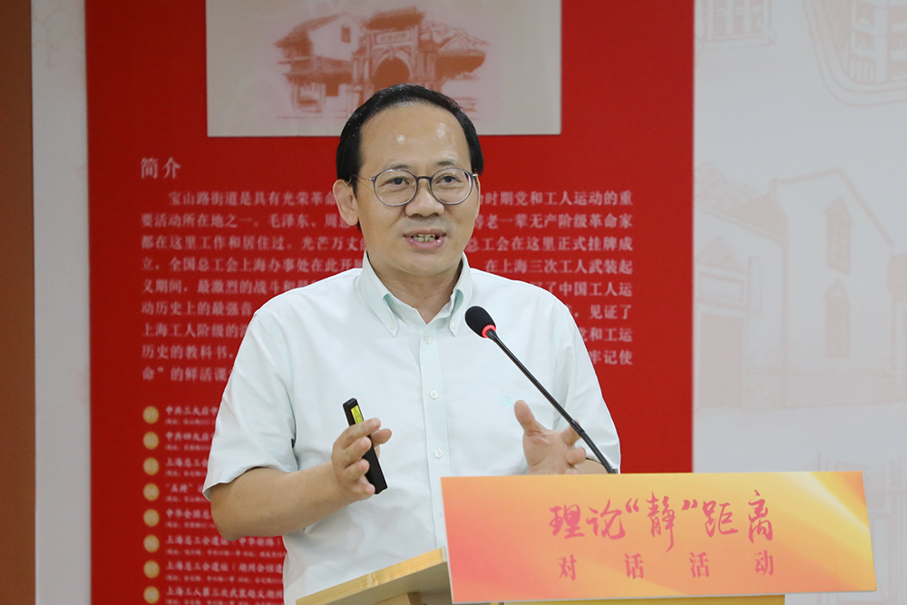 9月18日下午,百年工运与人民城市——“理论‘静’距离”九月对话活动在宝山路街道举行。本次活动由上海市社会科学界联合会、中共静安区委宣传部、静安区总工会主办,上海社会科学普及研究会、宝山路街道党工委承办。