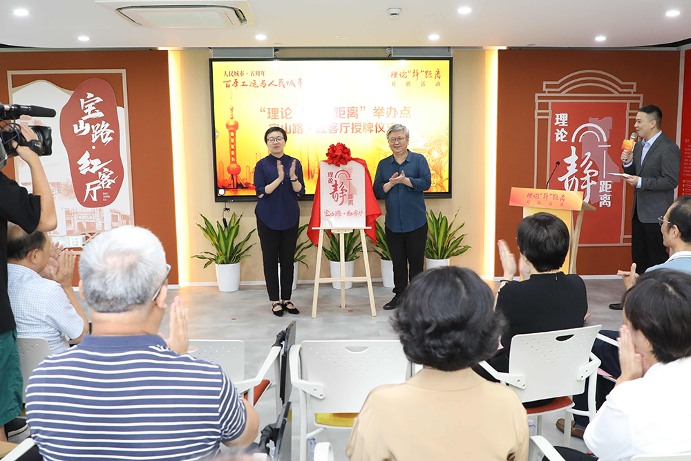 活动现场,王为松和萧烨璎共同为“理论‘静’距离”举办点“宝山路·红客厅”授牌。“宝山路·红客厅”是街道开展党员教育的开放式阵地、党的群众工作的鲜活课堂、党群服务的多功能平台。