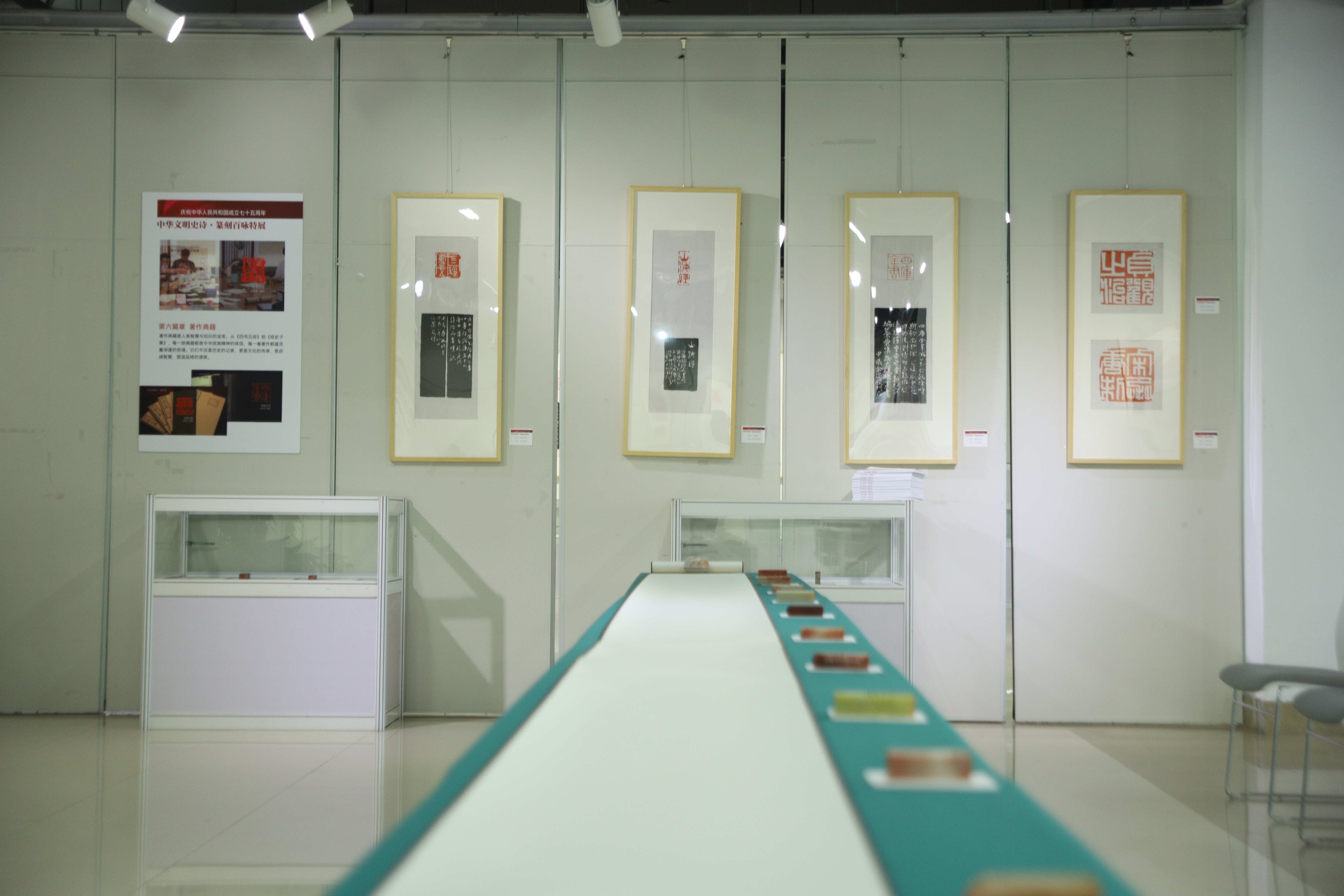这次展览囊括了中华上下五千年的精髓,展现了中华民族的自信自强。借助篆刻这一古老的传统艺术,青年学子从中华创世神话、文明踪迹、文化遗址、先哲圣贤、朝代制度、著作典籍、科技发明、传统艺术、自然景观、新中国新时代等十大板块内容入手,在方寸之间体现万千气象,用刻刀镌刻历史、用印石承载文化、用印蜕传递艺术,以印为媒讲好中国故事,传递中国声音。