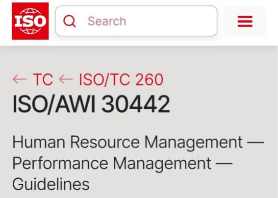 已批准立项项目:ISO/AWI 30442《人力资源管理 绩效管理指南》。图片来源:www.iso.org