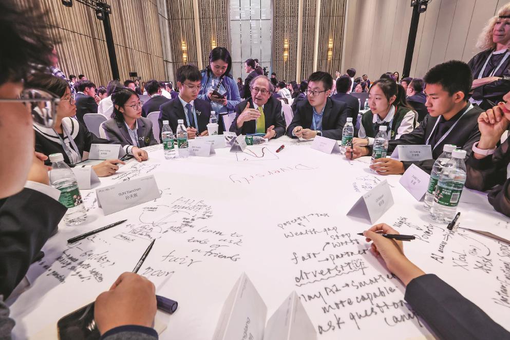 “桌布论坛是我最期待的环节。”论坛举行之前,上海外国语大学附属外国语学校的褚诗语满怀期待。她觉得,得到一句来自大咖的点拨,或许能打开自己的一个“脑洞”,结果没让她失望。圆桌上,褚诗语与辛格尔顿进行了细致深入的交流,在一个小细节上谁也不肯退让,甚至到了“剑拔弩张”的地步。论坛后,褚诗语对辛格尔顿赞不绝口,“他研究中的一个细节点燃了我”。