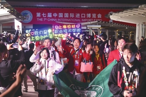 “明年来吗?”一位同学笑着问钱耀东时,他坚定地答道:“当然来!”今年,他刚以二年级“小叶子”的身份重回进博会。回忆起这些天的经历,这位上海工程技术大学的大三学子用“有青春,有陪伴”来概括。他在最为忙碌的国展文创馆工作,为来往的观众们发放礼品,体会到为他人服务的满足感,也交到了许多的朋友,谈及离别,他羞涩地说:“想到今天就是最后一天,其实有点鼻酸。”