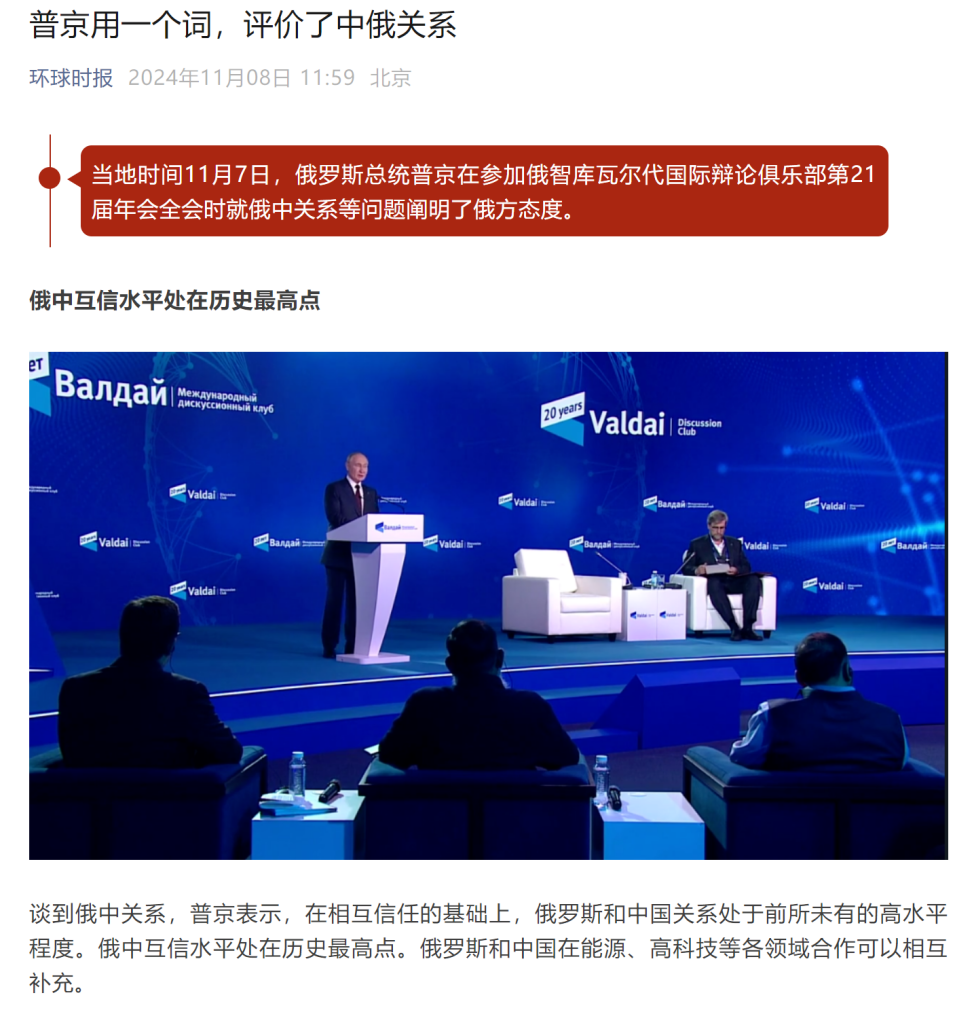 环球时报 | 普京用一个词,评价了中俄关系
