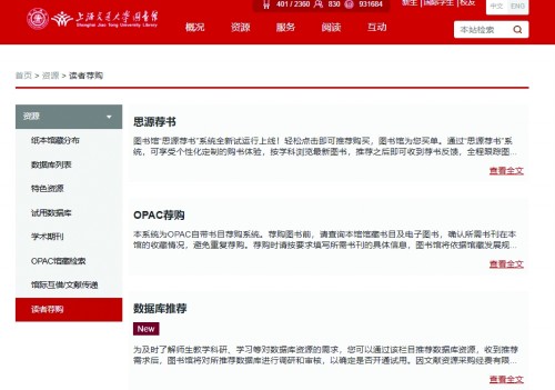 记者了解到,除了读者荐购,沪上各高校图书馆也纷纷立足学生的实际需求,在个性服务、功能转型等方面不断改进,希望让更多师生能爱上读书。