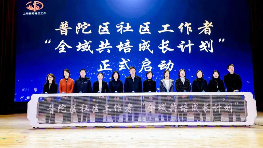 1月2日,普陀区社区工作者队伍建设推进会暨首届“社区工作者职业能力大赛”成果展示在普陀区图书馆举行。上海市委社会工作部副部长曾群,普陀区委副书记周艳等出席,并共同启动了普陀区社区工作者“全域共培成长计划”。