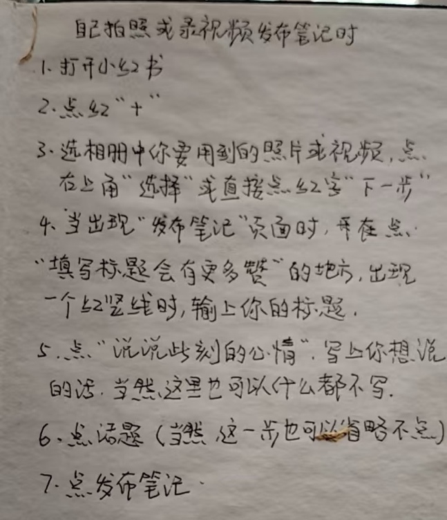 “这让我们意识到,很多老年人都有分享和表达的愿望,但他们不知道如何开始。”小红书相关负责人表示,由此产生了制作一份老人友好使用手册的念头。