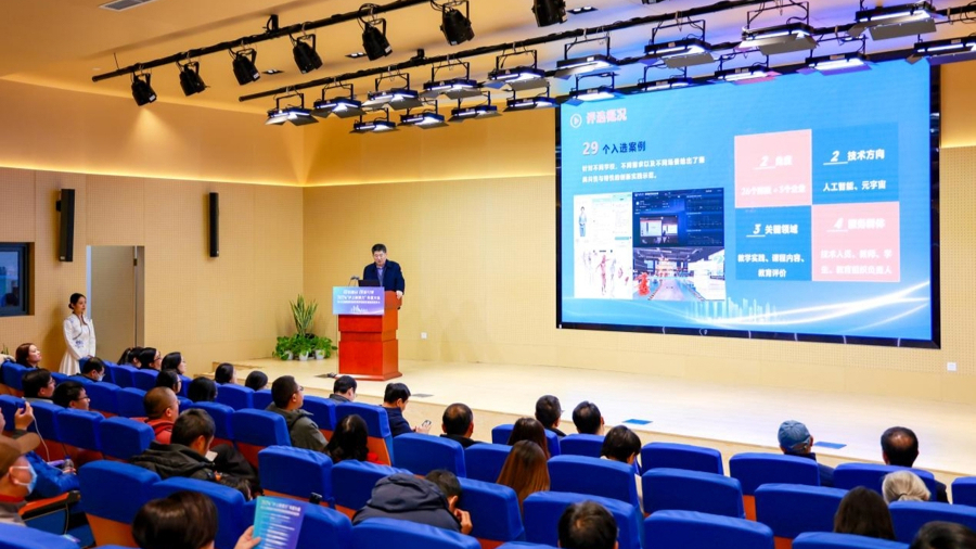 现场,多所高校、继续教育机构和中小学展示了人工智能赋能教育教学的最新探索与成果。