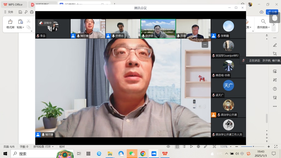 本期主持天津师大政治与行政学院教授褚尔康和五位分享嘉宾在开讲前的腾讯会议室,策划者佟德志副校长全程聆听并点评