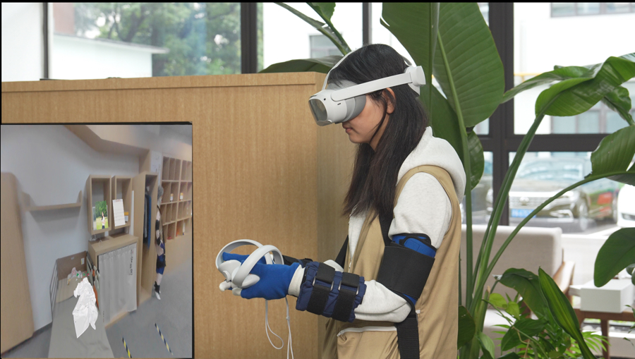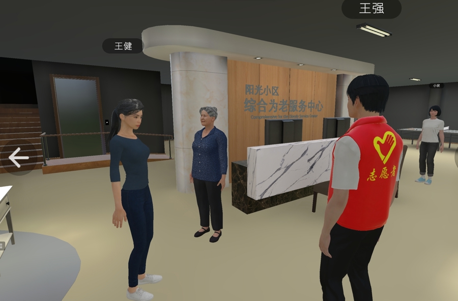 开放大学老年康复照护课程讲师张雨佳介绍,借助元宇宙技术和真实的语料喂给,特殊眼镜中的虚拟世界,映射出了最真实的人类认知障碍,让学生获得同理心,从而能以更科学的方式与老人沟通。同样,元宇宙也可仿真出一名与现实表现完全一致的失智老人,以训练学生的应对和照护能力。这恰是学校此前的痛点。张雨佳说:“过去训练时,我们不得不让学生来扮演老人,但又扮不像。请失智老人参与,难度更大。正是元宇宙场景的构建,破除了伦理风险,更大幅降低教学成本,让学生在虚拟环境下完成最具实效的训练。”