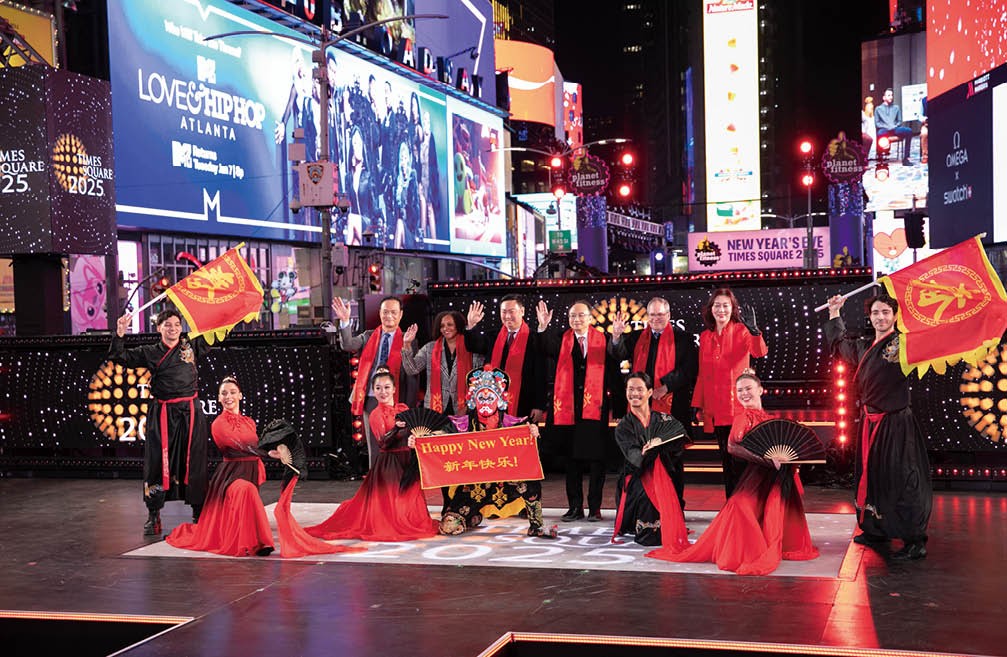 2024年12月31日,美国纽约市一年一度的时报广场跨年夜庆祝活动举行。当晚的活动以“品味非遗·喜迎春节”文艺表演拉开序幕。