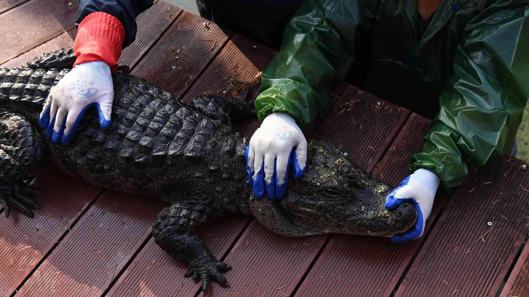 2022-09-21近日,上海徐汇滨江木港岸边出现一只鳄鱼的消息引发不少网友关注。从网友在现场拍下的图片及视频来看,这条鳄鱼长约八十公分,被拍时它似乎正在懒洋洋地晒太阳。不少人推测,这只鳄鱼为人工养殖后逃脱,或被人放生后进入黄浦江。随后,上海港航公安回应:网友所述确有其事,目前仍在对这条鳄鱼进行抓捕。 目前,多位专家断定,这并非扬子鳄,很有可能是暹罗鳄,属于外来物种。还有专家在接受采访时专门提到,近年来,外...