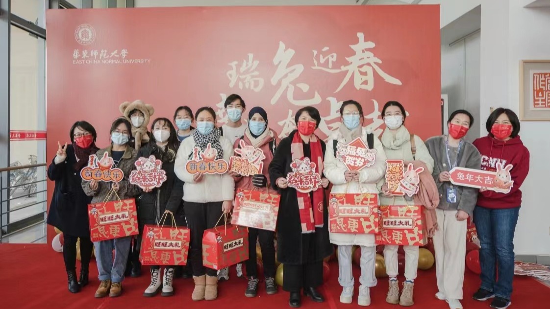 2023-01-25今天(1月20日)是岁终“大寒”节令,冬去春来,一个新的轮回即将开始。 大年二十九的华东师大校园冬阳和煦,欢庆祥和。“瑞兔迎春,幸福奔卓越”,在两校区大学生活动中心大厅里校党委书记梅兵,校长钱旭红为留校学生送上新春礼包。 学校相关职能部门,协同各学部院系组织温馨多彩的年味活动。在现场,师生亲手书写喜庆的福字树挂,猜灯谜、做兔灯、剪窗花,迎接新春,互送祝福。 今年寒假春节期间,共有3600余名...