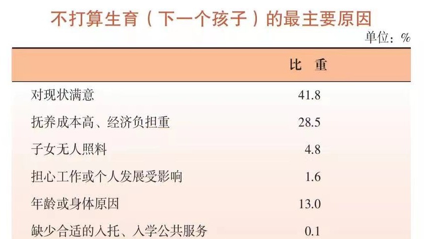 2023-03-30上海市统计局近日发布2022年人口变动情况抽样调查数据结果。根据调查,上海人口出生率继续呈现下降,“不打算生育(下一个孩子)的最主要原因”和“理想孩子数”的调查数据也出现在其中。记者从上海市统计局获悉,该数据系首次发布在该项统计报告中。不打算生育(下一个孩子)的最主要原因 本文图源:上海统计局 相关数据显示,在上海常住人口中,不打算生育(下一个孩子)的最主要原因为“对现状满意”,占比近半,为41...