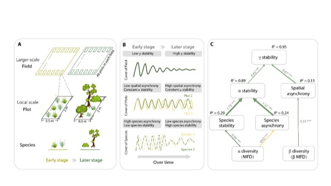 演替理论是植被生态学研究的核心问题,也是指导退化生态系统恢复的关键理论,被认为是解决当代人类环境危机的基础。经典演替理论认为,随着演替的进程,生态系统的稳定性逐渐提高。这一观点被广泛写入生态学教科书中,并已成为生态恢复的指导思想。但是,针对这一观点的长期实证研究依旧十分缺乏。图说:演替-稳定性和多样性-稳定性关系的空间尺度依赖性概念框架 采访对象供图 北京时间6日,3245澳门新莆京生态与环境科学...