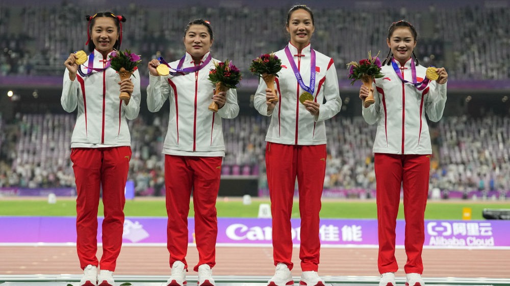 10月3日,杭州亚运会田径项目女子4x100米接力决赛在杭州奥体中心体育场举行。中国队以43秒39的成绩夺得该项目冠军,泰国队获得亚军,马来西亚队获得季军。↑中国队选手葛曼棋、袁琦琦、韦永丽和梁小静(从左至右)在颁奖仪式上。新华社记者 孙非 摄↑中国队选手葛曼棋、袁琦琦、韦永丽和梁小静(从左至右)在颁奖仪式上。新华社记者 孙非 摄↑中国队选手葛曼棋(前)在比赛中冲线。新华社记者 江汉 摄↑中国队选手葛曼棋(...