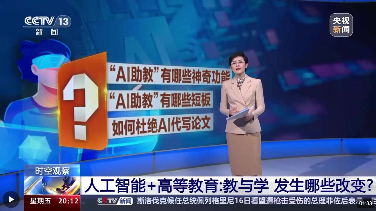 随着人工智能技术的迅猛发展,各个领域都在探索如何向AI借力。日前,教育部公布了首批18个“人工智能+高等教育”应用场景的典型案例,在高等教育领域积极推进人工智能的广泛应用。今天(5月17日)的《时空观察》,我们带您打开“AI助教”的神奇功能,看看哪些AI工具在高校最受欢迎?与此同时,人工智能提升了教学效率,也伴生了一些问题。老师和同学们在实际使用中发现了哪些AI的短板?此外,新技术的出现,还吸引了一些别有用...