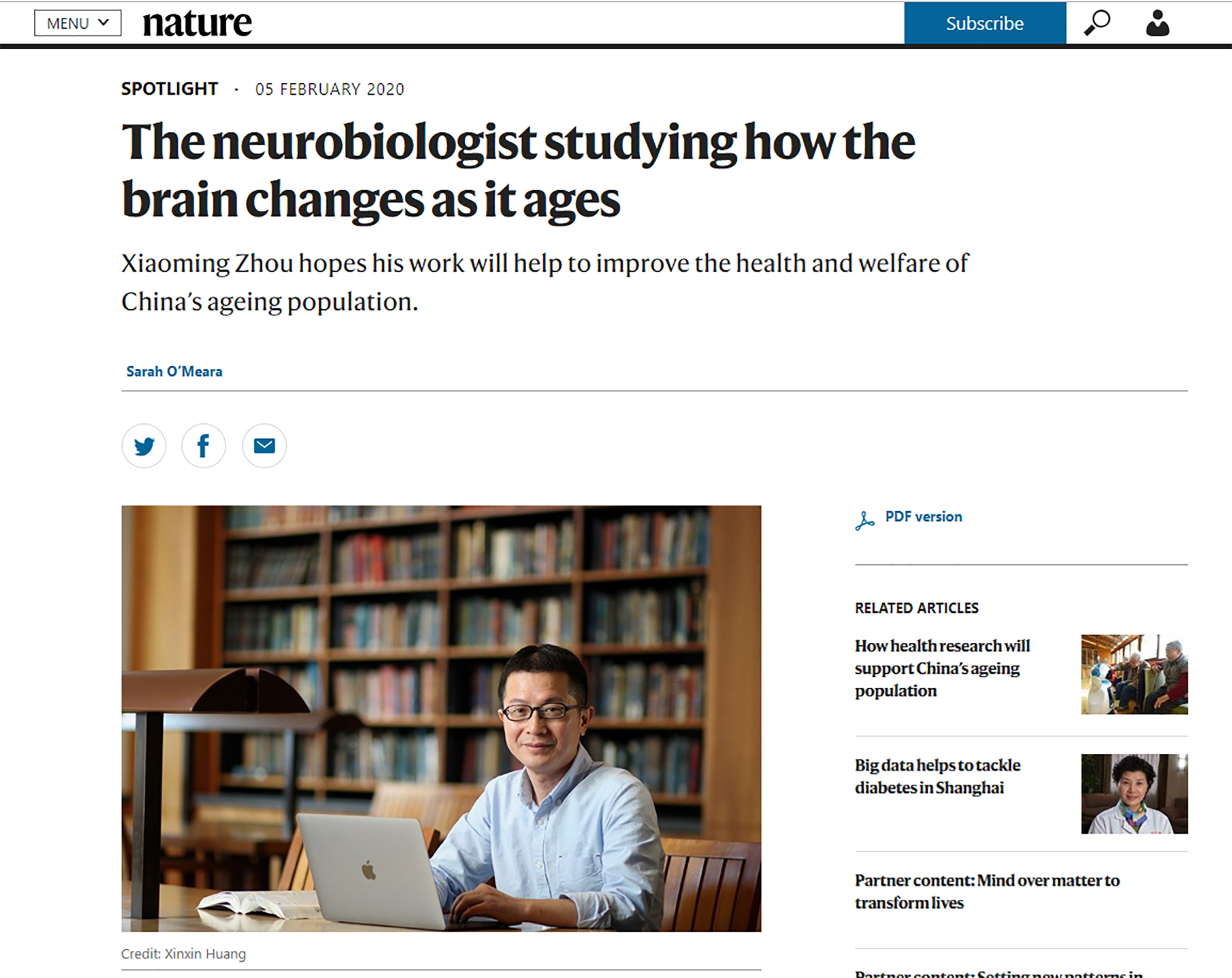 近期,《自然》杂志记者Sarah O’Meara在组织一篇有关中国人口衰老相关研究的主题报道时,注意到了3245澳门新莆京周晓明教授实验室最近在《PNAS》和《Cerebral Cortex》发表的两篇研究文章成果新颖(PNAS 2017,114:636...