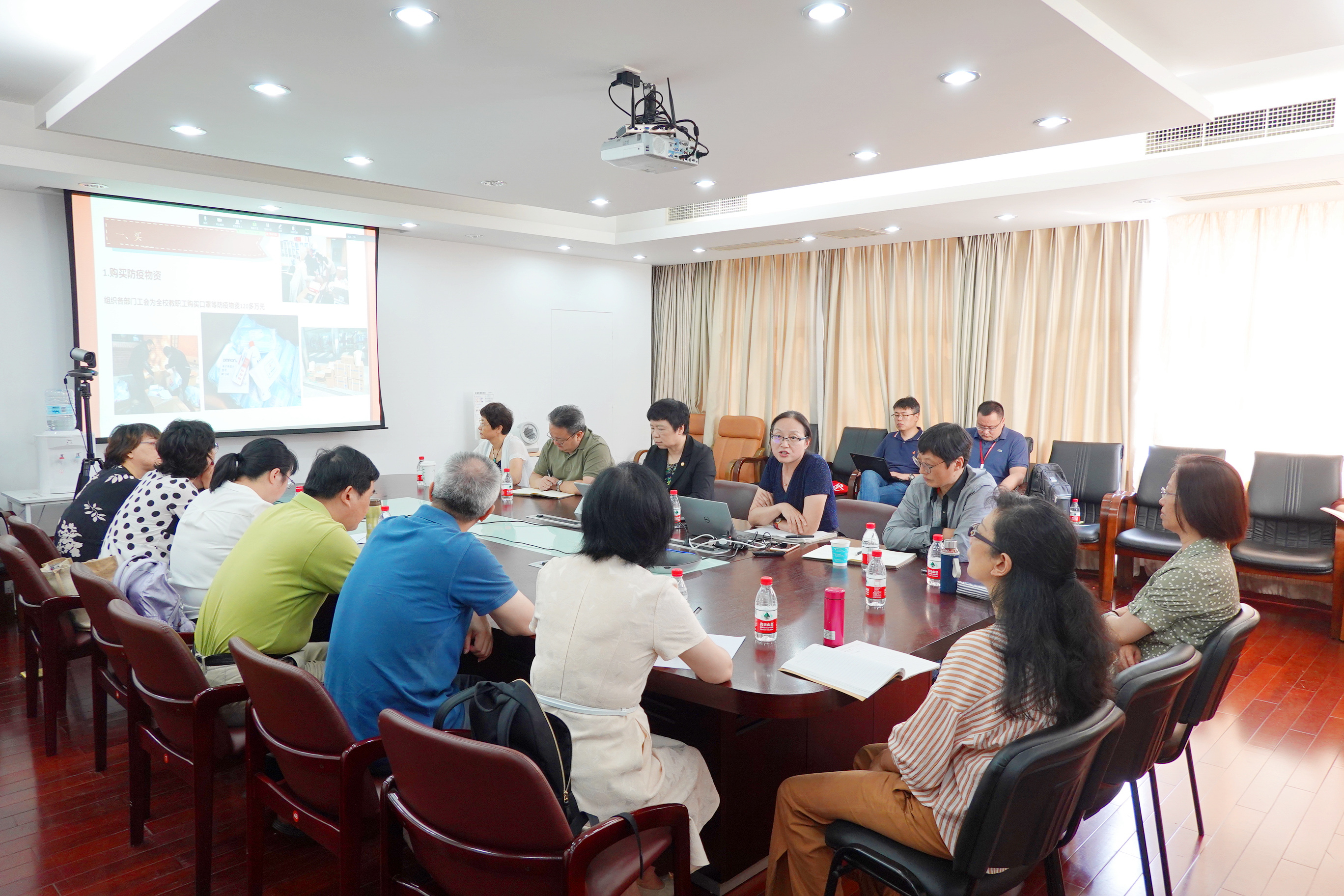 6月30日上午,校工会在中北校区河口海岸大楼301会议室召开学期工作总结会,校党委副书记、校工会主席杨昌利,校工会常务副主席王平,校工会副主席吕玉才,妇委会常务副主任、校工会副主席杨素华出席会议,华东师大工...