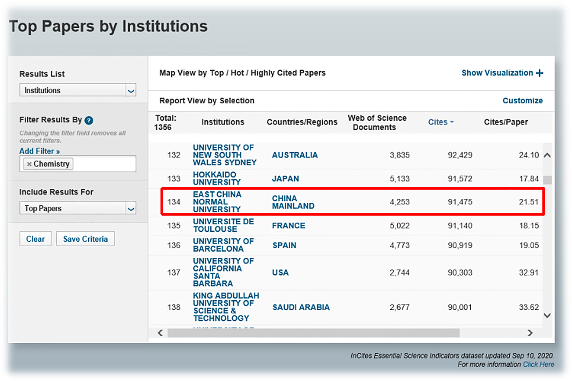 据2020年9月10日科睿唯安(Clarivate Analytics)“基本科学指标数据库”(Essential Science Indicators,简称ESI)公布的最新数据,华东师大化学学科成功进入全球前1‰学科,标志着化学学科建设取得了新突破。ESI数据...