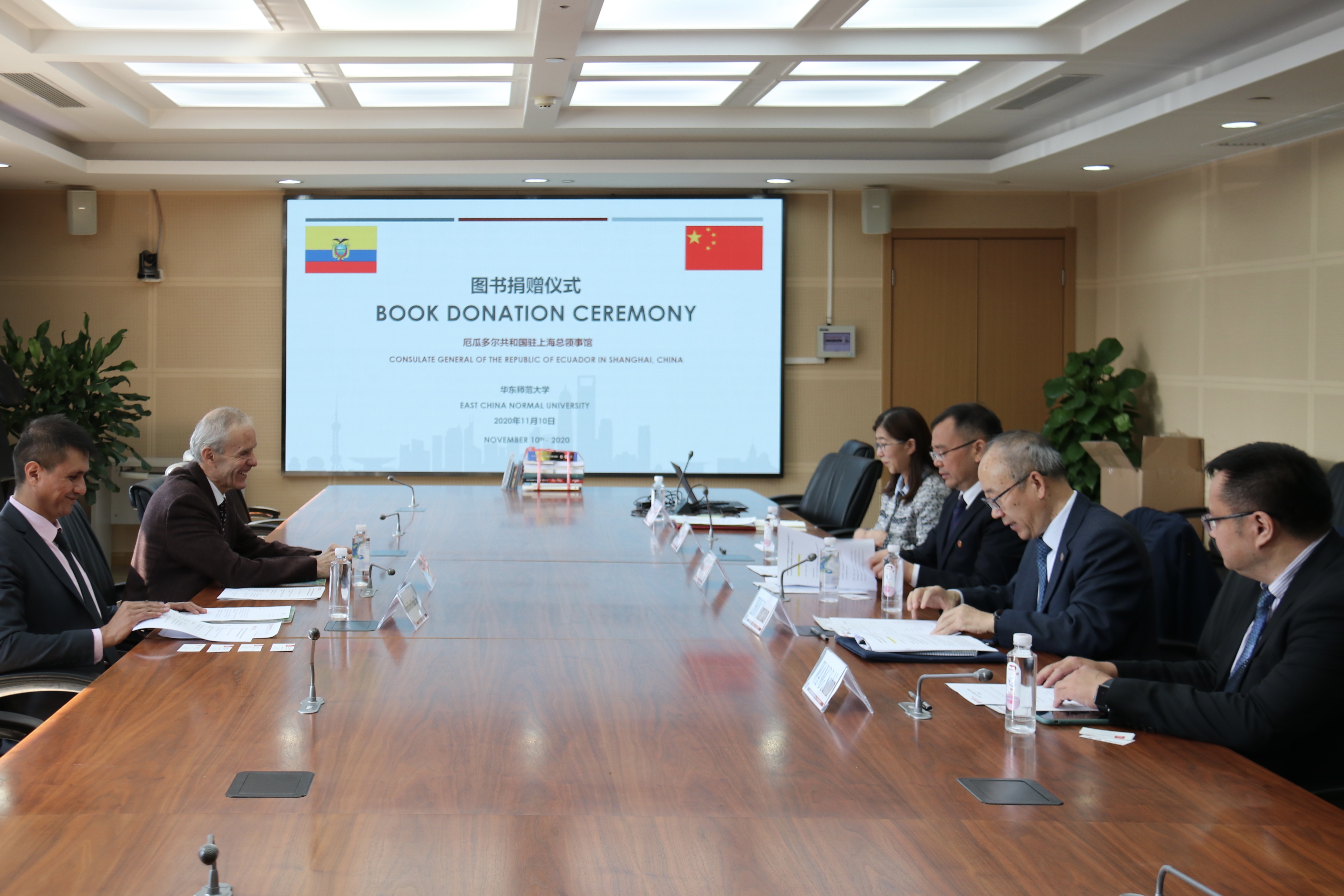 11月10日,厄瓜多尔驻上海总领事馆总领事Franklin Gustavo Chávez Pareja(富兰克林)先生、副领事Mauricio Silverio Miranda Chávez(毛里西奥)先生访问华东师大,并代表厄瓜多尔驻华使馆向华东师大图书馆捐赠西班...