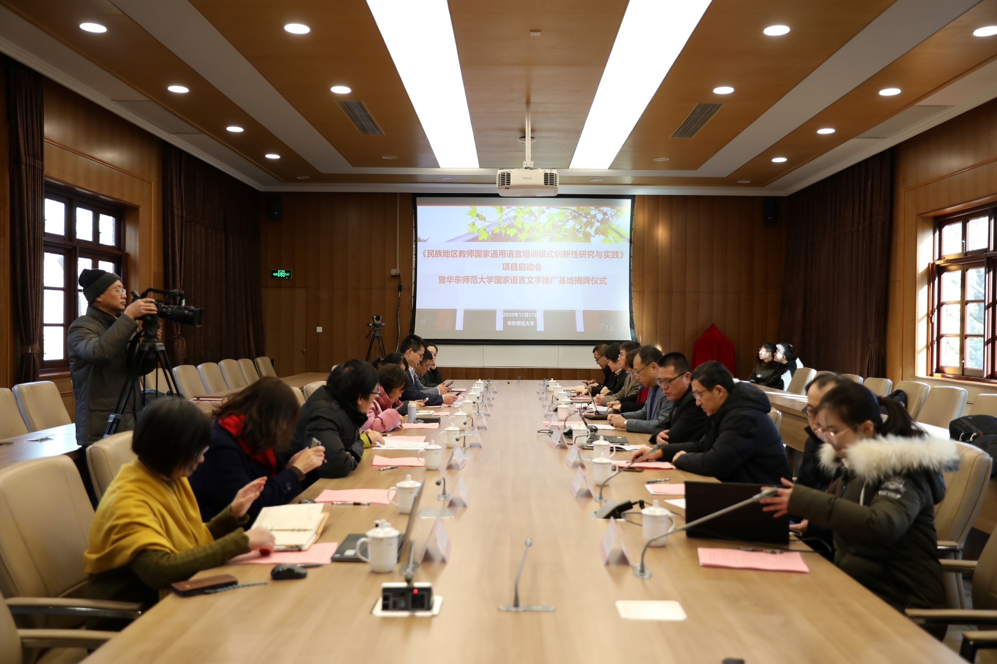 2020年12月31日上午,由华东师大国家语言文字推广基地主办的国家语言文字推广基地重大建设项目《民族地区教师国家通用语言培训模式创新性研究与实践》项目启动会暨华东师大国家语言文字推广基地揭牌仪式在中山北路校...