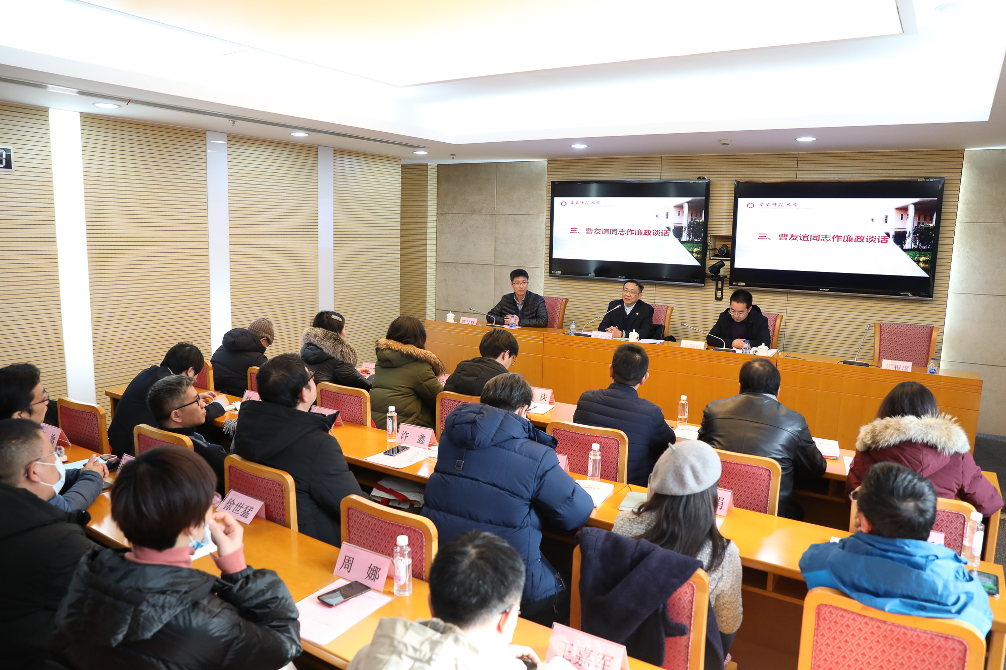 1月7日,本学期中层干部集体廉政谈话会在宝山区反腐倡廉教育基地举行。校党委副书记、纪委书记曹友谊,组织部副部长陈旦锋以及18位本学期新提任、交流任职的中层副职干部出席。会议由校纪委副书记、纪委办主任、监察...