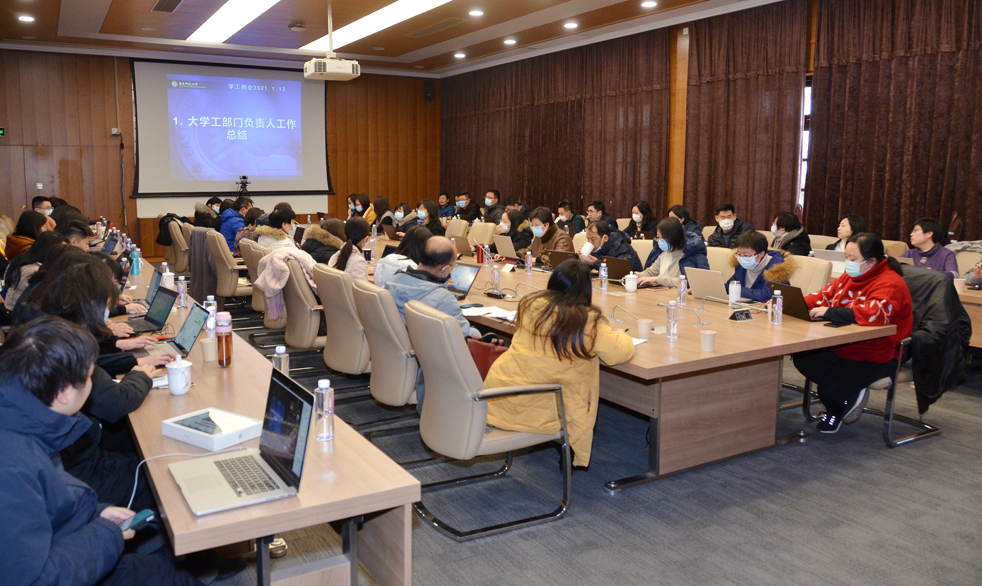 1月12日上午,2021年首次学工例会在中山北路校区办公楼小礼堂召开,“大学工”各部门、国际教育中心、港澳台办公室负责人及各院系(学部、书院)分管学生工作负责人出席会议,全校专兼职辅导员等线上参会。校党委副书...