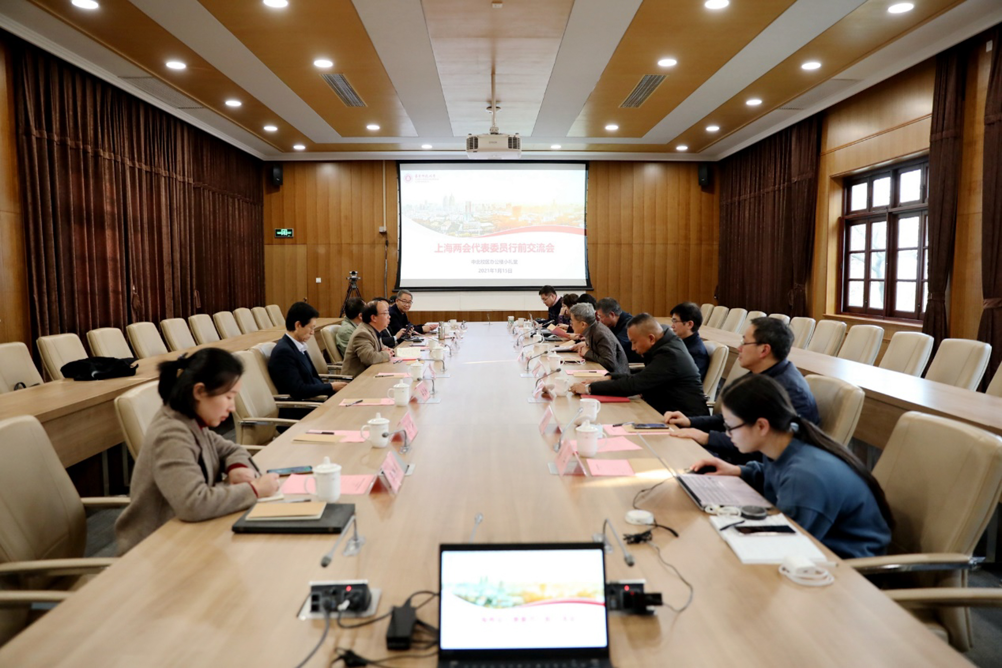 2021年上海“两会”召开在即,1月15日下午,华东师大上海两会代表委员行前交流会在中山北路校区办公楼的小礼堂举行,在校两会代表、委员将继续以饱满热情积极履职,参政议政,为地区经济社会发展贡献力量。华东师大教...
