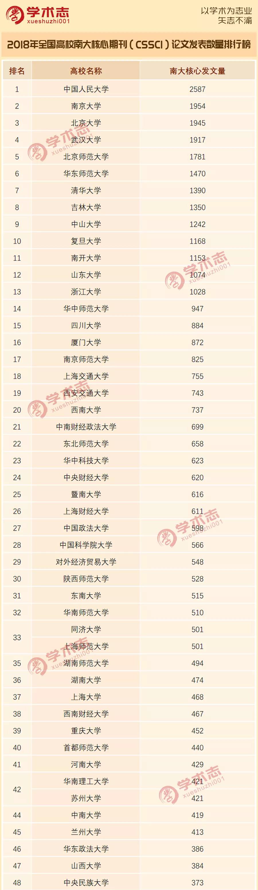 日前,2018年全国高校南大核心(CSSCI)论文发表数量排行榜发布。我校以1470篇的发文量居榜单第6位,位列上海高校第一。 榜单显示,在2018年全国高校南大核心(CSSCI)论文发表数量上,排名高校一共发表了78661篇南...