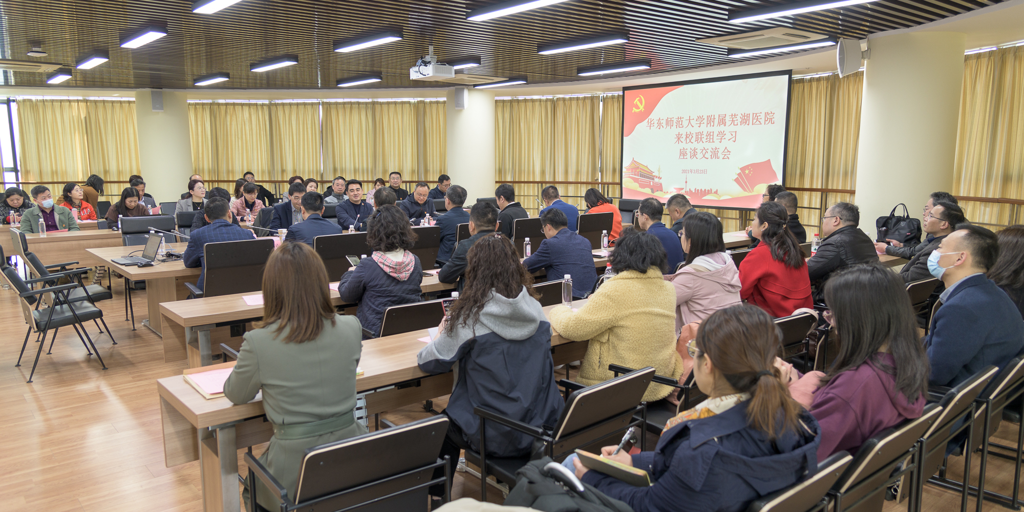 3月23日上午,华东师大机关党工委与华东师大附属芜湖医院党委联组学习座谈交流会在校举行。来自附属芜湖医院的45位党支部书记及职能部门主要负责人,与机关党工委、宣传部、工会、人事处、科技处、国有资产管理处、实...
