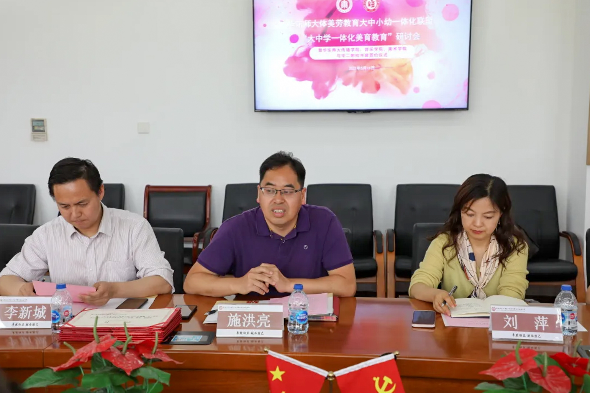 5月11日下午,“大中学美育一体化”研讨会暨华东师大二附中附属初中(简称二附初)与华东师大传播学院、美术学院、音乐学院共建签约仪式举行。华东师大传播学院党委书记方齐华、美术学院党委书记刘麒、音乐学院副院长...