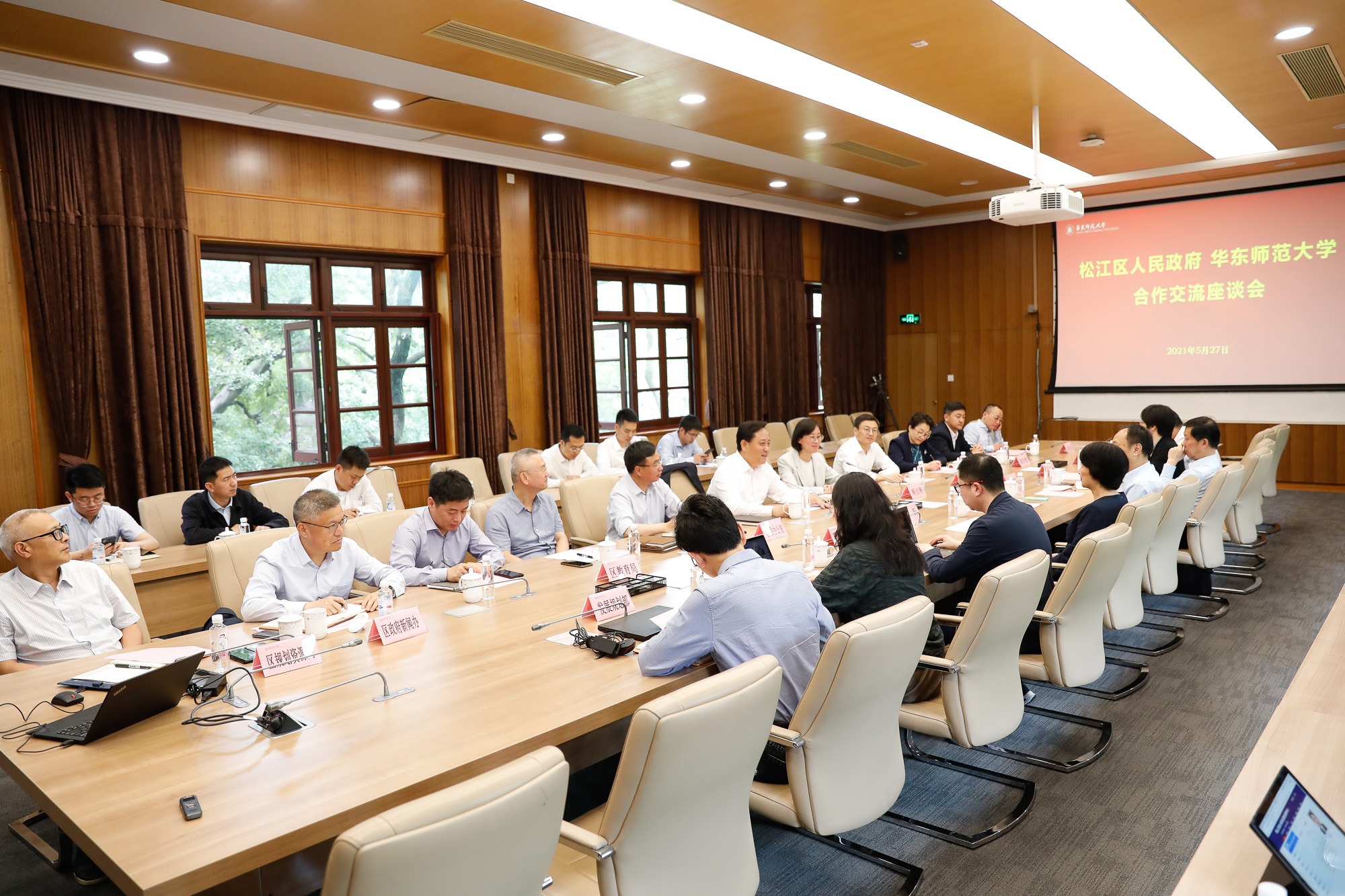 5月27日上午,松江区人民政府-3245澳门新莆京举行区校合作交流座谈会。华东师大党委书记梅兵会见了来访的松江区委书记程向民一行。座谈会由副校长戴立益主持。松江区副区长顾洁燕,华东师大二附中校长李志聪等出席会议...