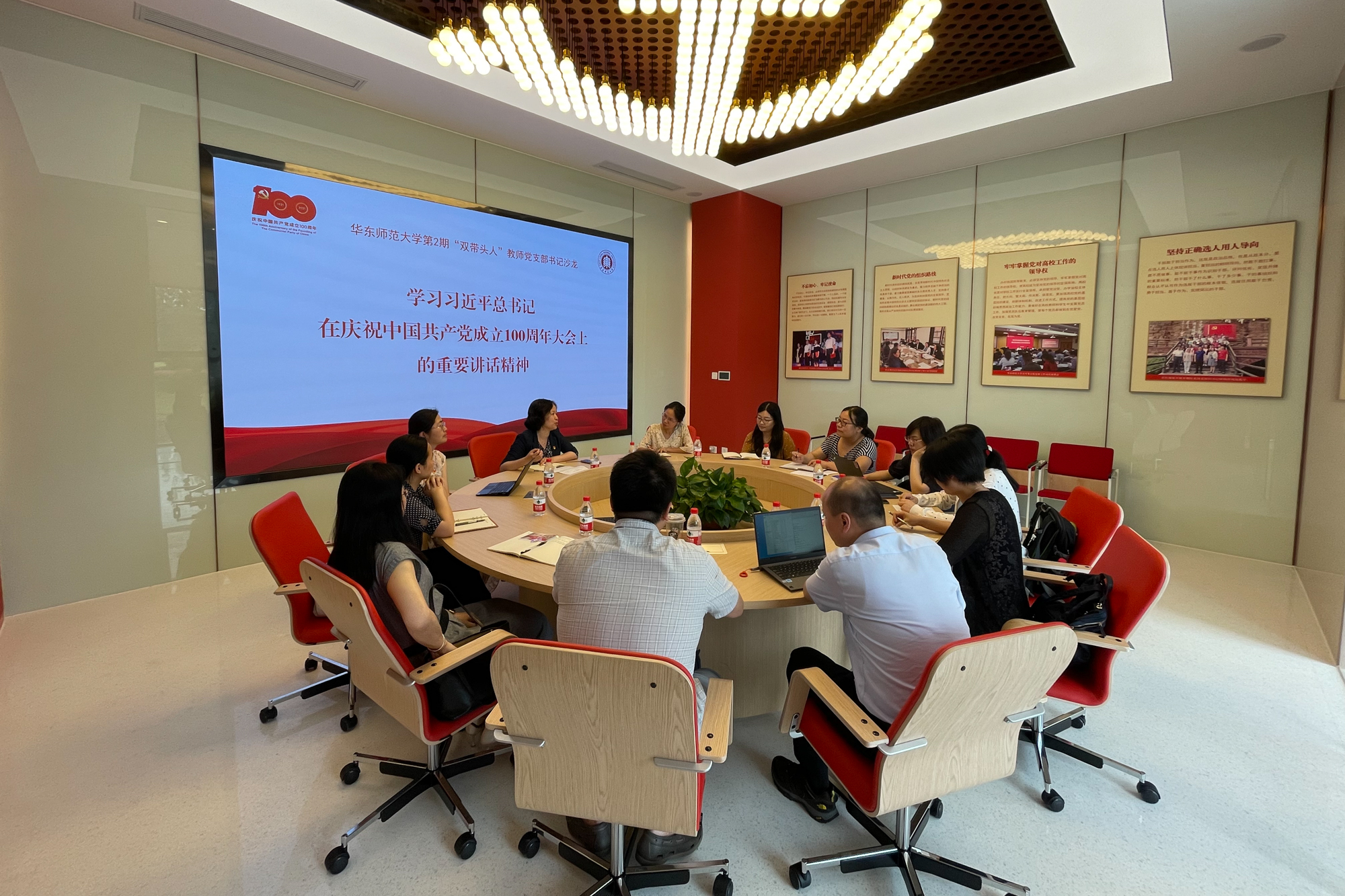 7月1日下午,第2期“双带头人”教师党支部书记沙龙以“学习习近平总书记在庆祝中国共产党成立100周年大会上的重要讲话精神”为主题,在闵行校区党建服务中心举行。来自中文系、历史学系、政治学系、马克思主义学院、...
