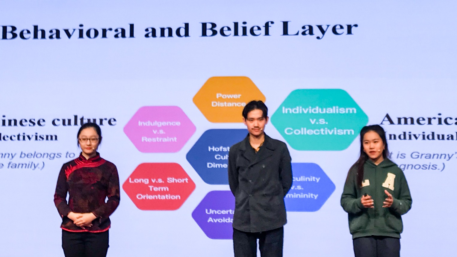 11月28日,由上海市教育委员会指导,上海外国语大学主办,上海外语教育出版社承办的第六届“外教社杯”上海市高校学生跨文化能力大赛决赛在线上圆满落幕。我校2020级播音与主持艺术专业本科生唐艺馨、2020级教育学大类专业本科生范骁洋及2020级物理学专业本科生屈之硕组成的参赛团队,在外语学院大学英语教学部李辉老师的指导下,蝉联上海市一等奖,我校获评“优秀组织单位”。2020级本科生范骁洋、屈之硕、唐艺馨(从左至...