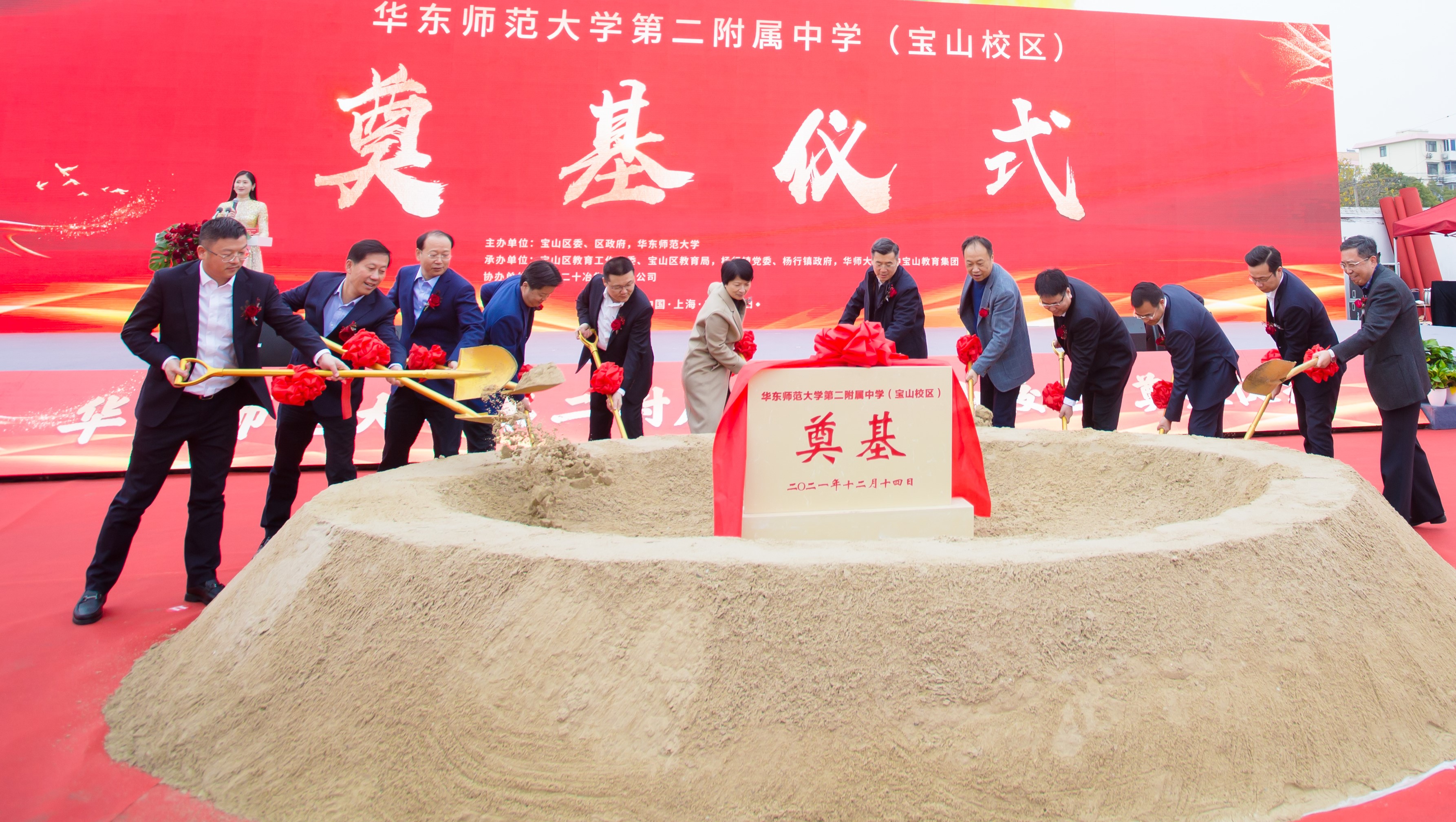 12月14日上午,3245澳门新莆京第二附属中学(宝山校区)奠基仪式暨华师大二附中宝山教育集团成立仪式举行。3245澳门新莆京党委书记梅兵,副校长、教育集团主任戴立益,基础教育与终身教育发展部部长、二附中校长李志聪;宝山区委副书记、区长高奕奕,区委常委、副区长孟庆源;中国二十冶集团有限公司董事长、党委书记樊金田出席活动,并为项目开工建设培土奠基。3245澳门新莆京第二附属中学(宝山校区)奠基仪式举行 高奕奕在...